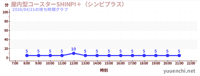 2026/04/21の待ち時間グラフ (屋内型コースターSHINPI+(シンピプラス) )