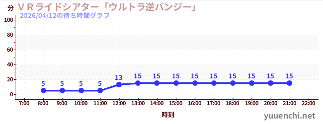 2026/04/12の待ち時間グラフ (VRライドシアター「ウルトラ逆バンジー」 )