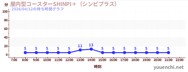 2026/04/12の待ち時間グラフ (屋内型コースターSHINPI+(シンピプラス) )