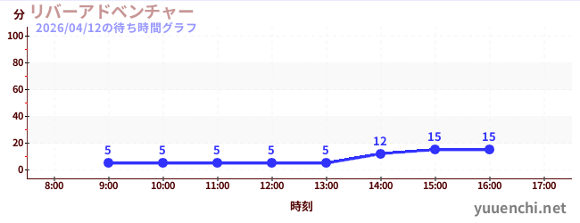 2026/04/12の待ち時間グラフ (リバーアドベンチャー )
