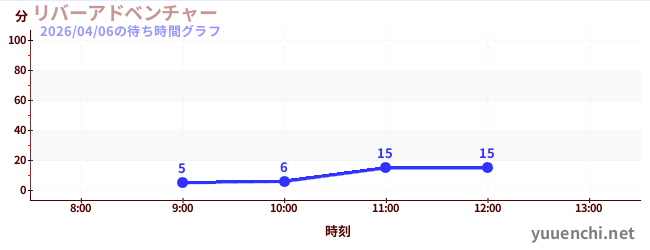 今日これまでの混雑グラフ (リバーアドベンチャー )