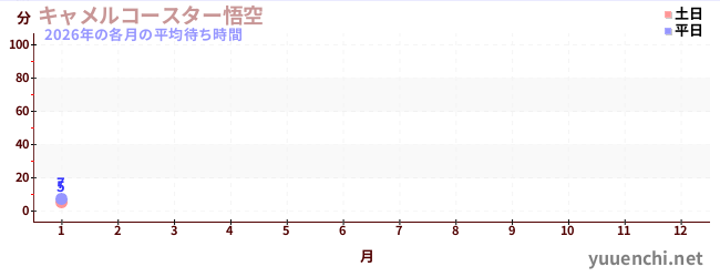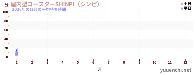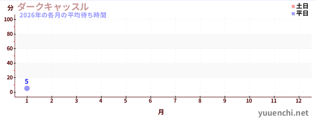 2026해당 연도 각 월의 평균 대기 시간 (レーザーアトラクション恐竜研究所 )
