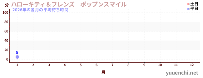 2026해당 연도 각 월의 평균 대기 시간 (헬로 키티 & 프렌즈 팝픈 스마일)