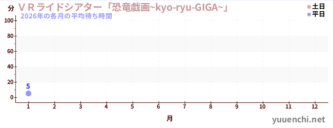 2026해당 연도 각 월의 평균 대기 시간 (VR 라이드 극장 '공룡 희화 ~ kyo-ryu-GIGA ~')