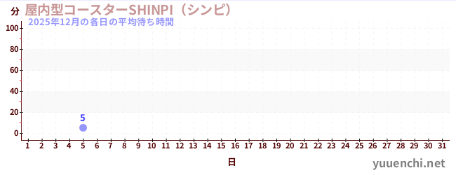 2025/12每日的平均等待時間 (室內過山車 SHINPI)