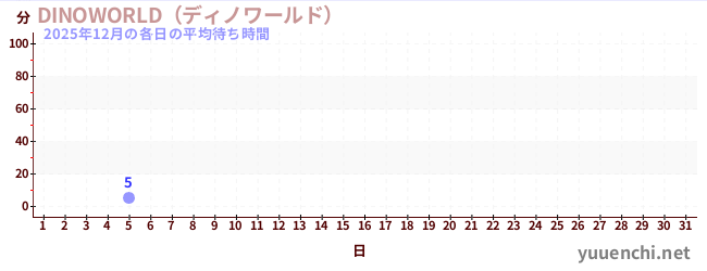 2025/12每日的平均等待時間 (レーザーアトラクション恐竜研究所 )