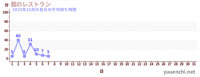 2025/10の一日平均待ち時間 (レディキティハウス)