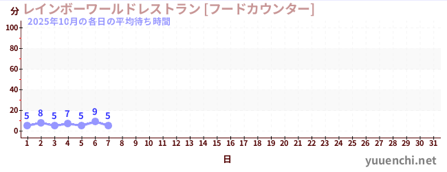 2025/10の一日平均待ち時間 (レインボーワールドレストラン [フードカウンター])