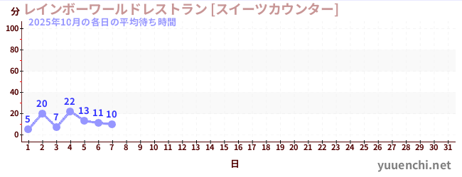 2025/10の一日平均待ち時間 (レインボーワールドレストラン [スイーツカウンター])