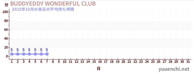 2025/10の一日平均待ち時間 (BUDDYEDDY WONDERFUL CLUB)