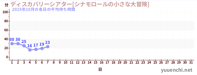2025/10の一日平均待ち時間 (ディスカバリーシアター[シナモロールの小さな大冒険])