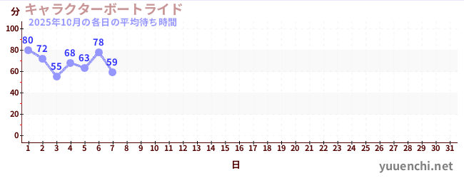2025/10の一日平均待ち時間 (キャラクターボートライド)