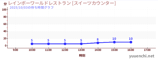 2025/10/03の待ち時間グラフ (レインボーワールドレストラン [スイーツカウンター])