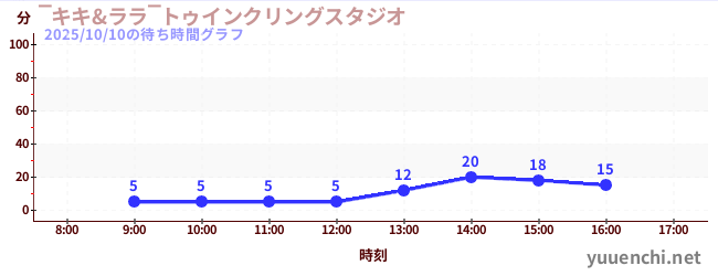 2025/10/10の待ち時間グラフ (‾キキ&ララ‾トゥインクリングスタジオ)