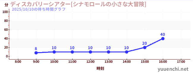 2025/10/10の待ち時間グラフ (ディスカバリーシアター[シナモロールの小さな大冒険])