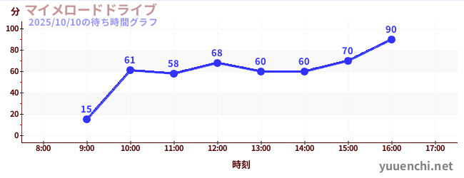 2025/10/10の待ち時間グラフ (マイメロードドライブ)