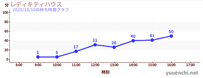 2025/10/10の待ち時間グラフ (レディキティハウス)