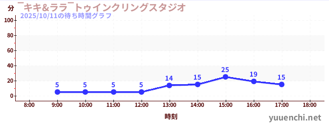 2025/10/11の待ち時間グラフ (‾キキ&ララ‾トゥインクリングスタジオ)