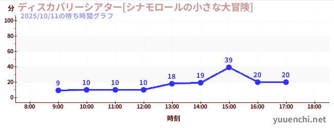 2025/10/11の待ち時間グラフ (ディスカバリーシアター[シナモロールの小さな大冒険])