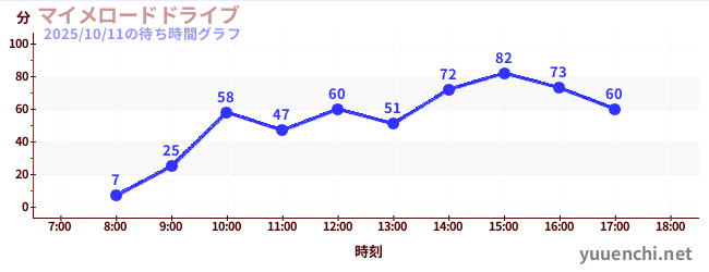 2025/10/11の待ち時間グラフ (マイメロードドライブ)