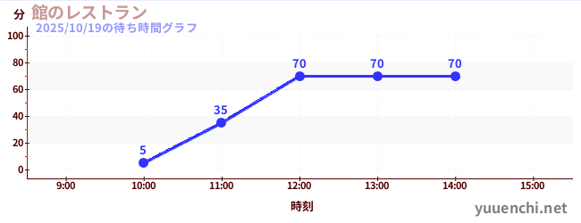 2025/10/19の待ち時間グラフ (館のレストラン)