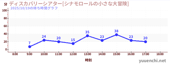 2025/10/19の待ち時間グラフ (ディスカバリーシアター[シナモロールの小さな大冒険])