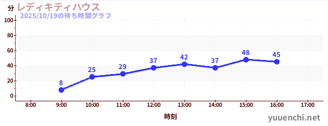 2025/10/19の待ち時間グラフ (レディキティハウス)