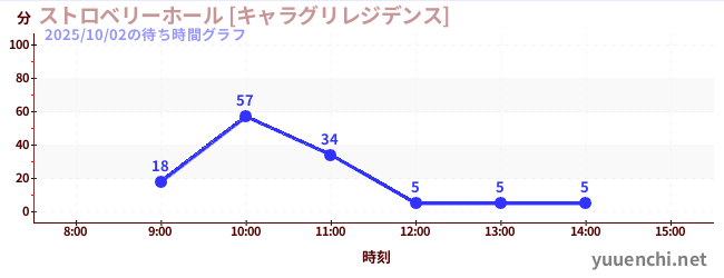 2025/10/02の待ち時間グラフ (ストロベリーホール [キャラグリレジデンス])