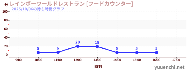 2025/10/06の待ち時間グラフ (レインボーワールドレストラン [フードカウンター])