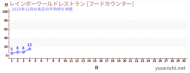 2025/11の一日平均待ち時間 (レインボーワールドレストラン [フードカウンター])