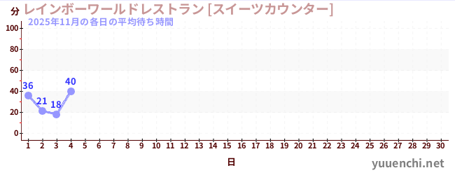 2025/11の一日平均待ち時間 (レインボーワールドレストラン [スイーツカウンター])