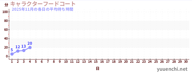 2025/11の一日平均待ち時間 (キャラクターフードコート)