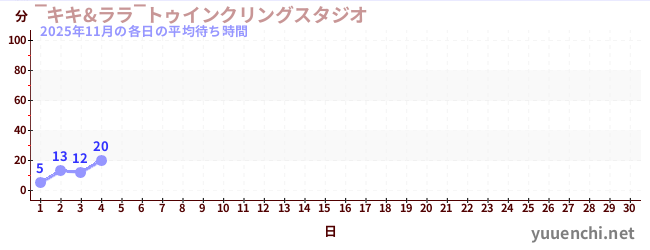 2025/11の一日平均待ち時間 (‾キキ&ララ‾トゥインクリングスタジオ)