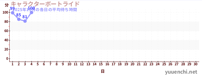 2025/11の一日平均待ち時間 (キャラクターボートライド)