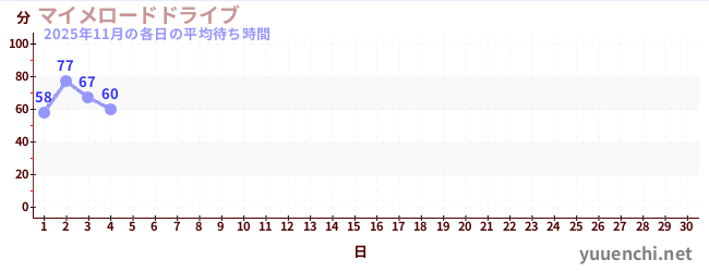2025/11の一日平均待ち時間 (マイメロードドライブ)