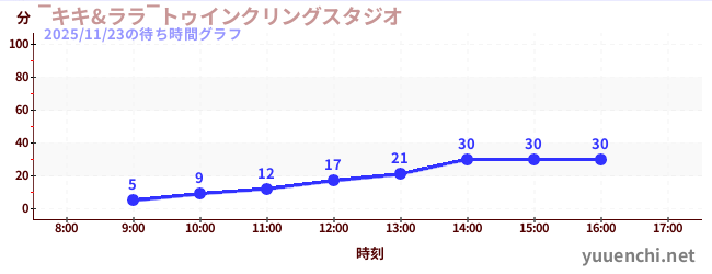 2025/11/23の待ち時間グラフ (‾キキ&ララ‾トゥインクリングスタジオ)