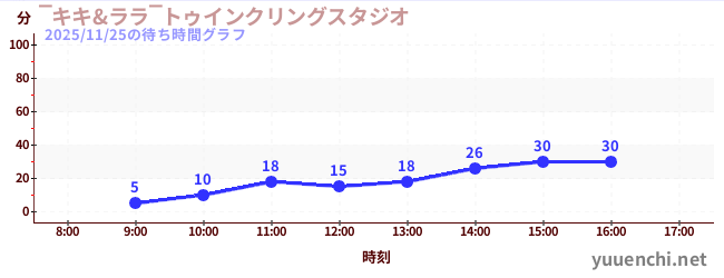 2025/11/25の待ち時間グラフ (‾キキ&ララ‾トゥインクリングスタジオ)