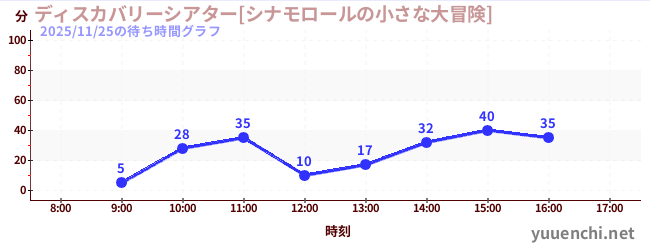 2025/11/25の待ち時間グラフ (ディスカバリーシアター[シナモロールの小さな大冒険])