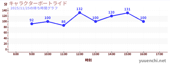 2025/11/25の待ち時間グラフ (キャラクターボートライド)
