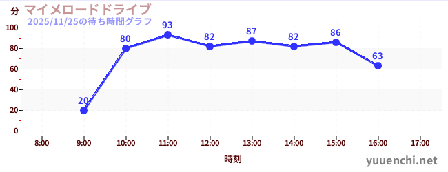 2025/11/25の待ち時間グラフ (マイメロードドライブ)