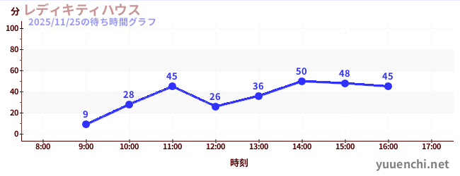 2025/11/25の待ち時間グラフ (レディキティハウス)