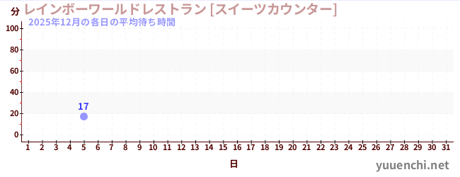 2025/12の一日平均待ち時間 (レインボーワールドレストラン [スイーツカウンター])