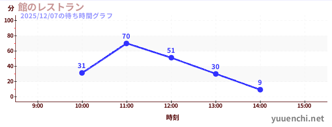 2025/12/07の待ち時間グラフ (館のレストラン)
