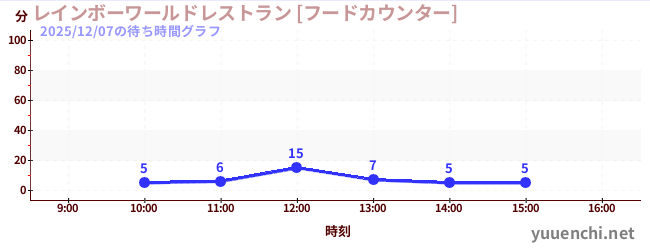 2025/12/07の待ち時間グラフ (レインボーワールドレストラン [フードカウンター])