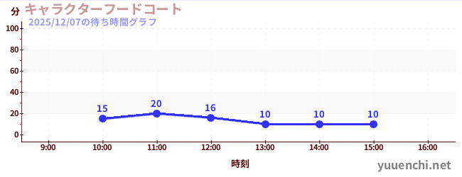 2025/12/07の待ち時間グラフ (キャラクターフードコート)