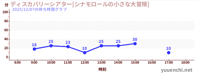 2025/12/07の待ち時間グラフ (ディスカバリーシアター[シナモロールの小さな大冒険])