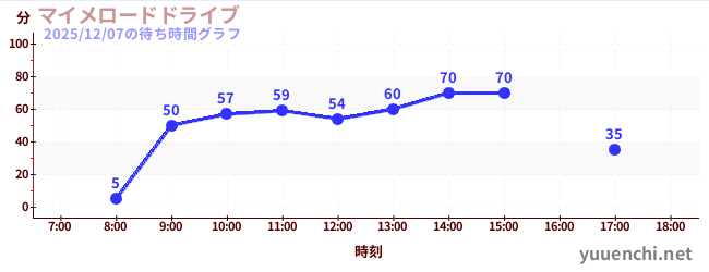 2025/12/07の待ち時間グラフ (マイメロードドライブ)