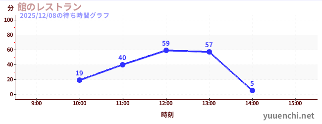 2025/12/08の待ち時間グラフ (館のレストラン)