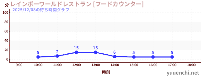 2025/12/08の待ち時間グラフ (レインボーワールドレストラン [フードカウンター])