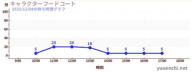 2025/12/08の待ち時間グラフ (キャラクターフードコート)